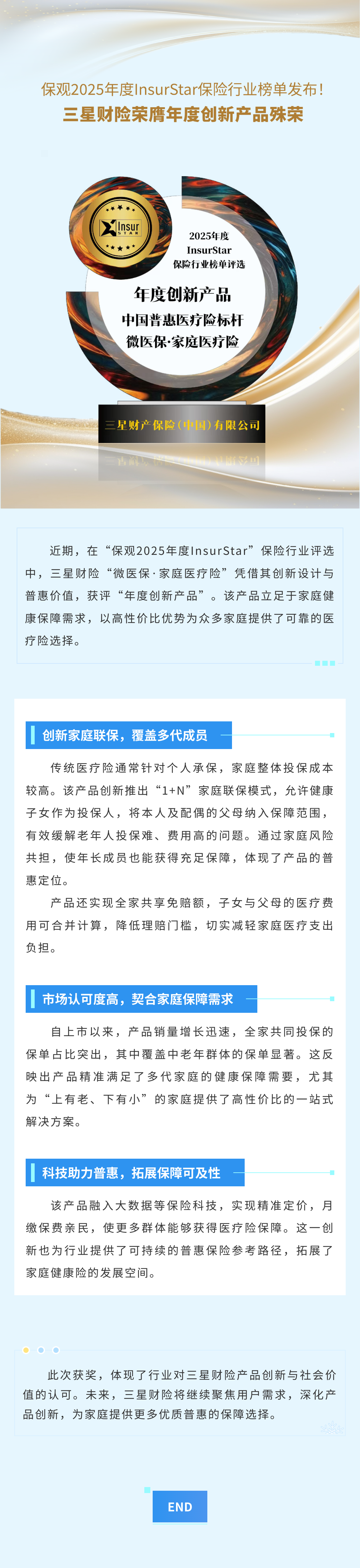 喜讯| 三星财险家庭医疗险获评2025年度InsurStar创新产品!