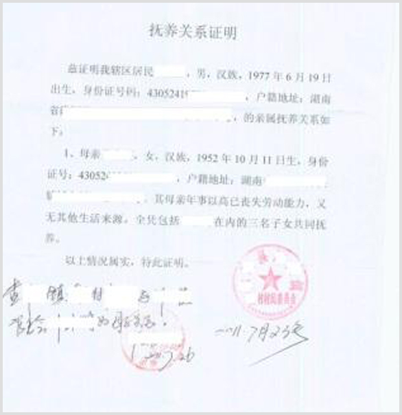 被扶养人无其他生活来源证明